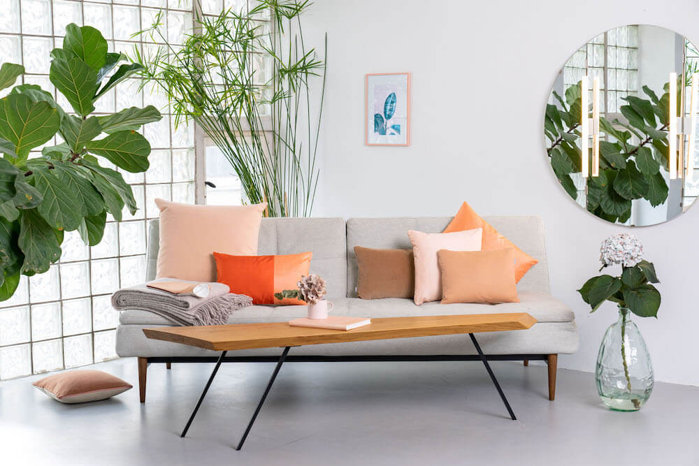 Invigorating orange - apricot for your living room - a harmonious play of colors made of silk and linen